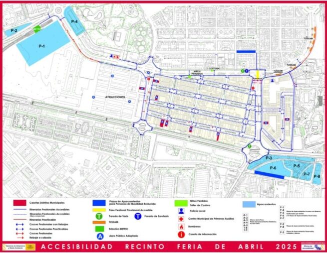 Desde la Gerencia de Urbanismo y Medio Ambiente han asegurado que el plan de actuaciones del Plan de Feria que se coordinan desde el CECOP, y los citados estamentos públicos del Ayuntamiento de Sevilla, ha vuelto a elaborar este año un plano con información precisa y detallada de las condiciones de accesibilidad del recinto ferial y áreas limítrofes.