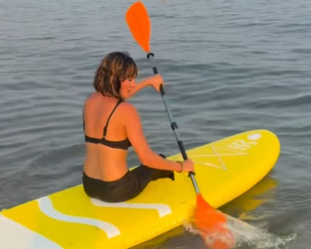 En el vídeo se puede observar como Irene Villa se introduce mar adentro con su tabla de ‘Paddle Surf’ remando y remando. «Soy súper playera. No te imaginas lo que disfruto», afirma la conocida periodista española.